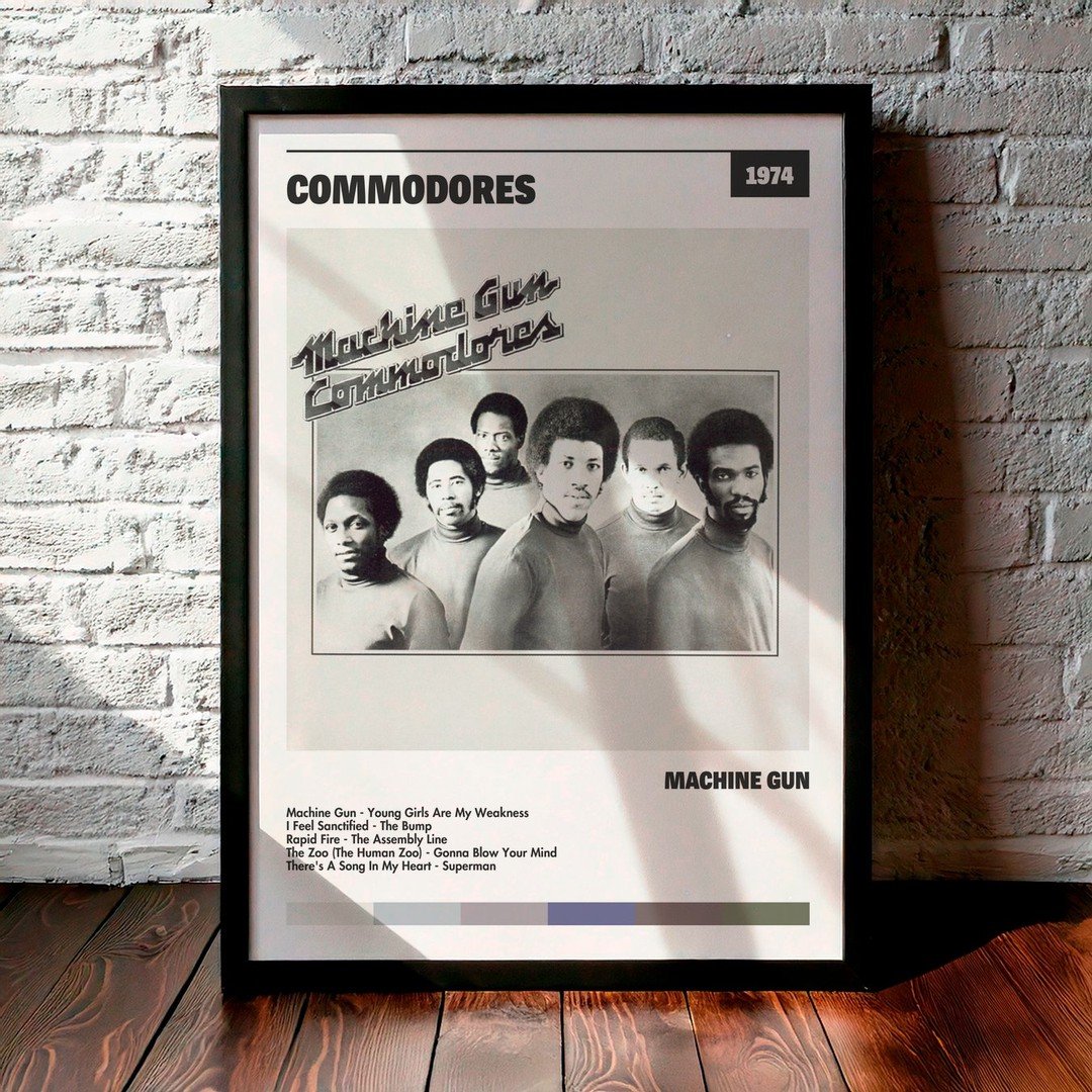 • Diseño Exclusivo: Cuadro de alta calidad basado en la portada del álbum Machine Gun de Commodores.
