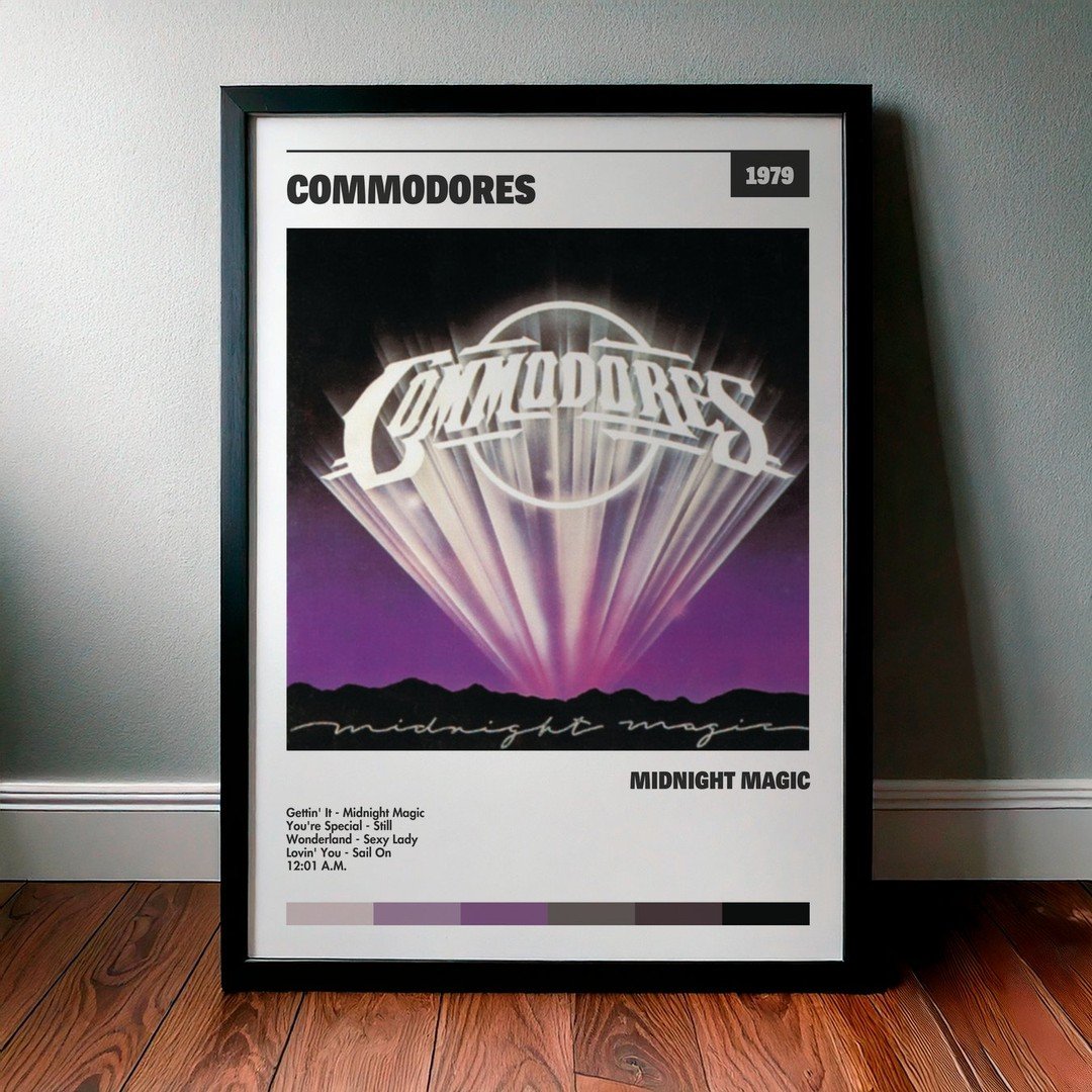 Nuestra colección de cuadros de Commodores captura la esencia de sus álbumes más icónicos, presentados en un elegante estilo, en este caso te presentamos el de su disco Midnight Magic.