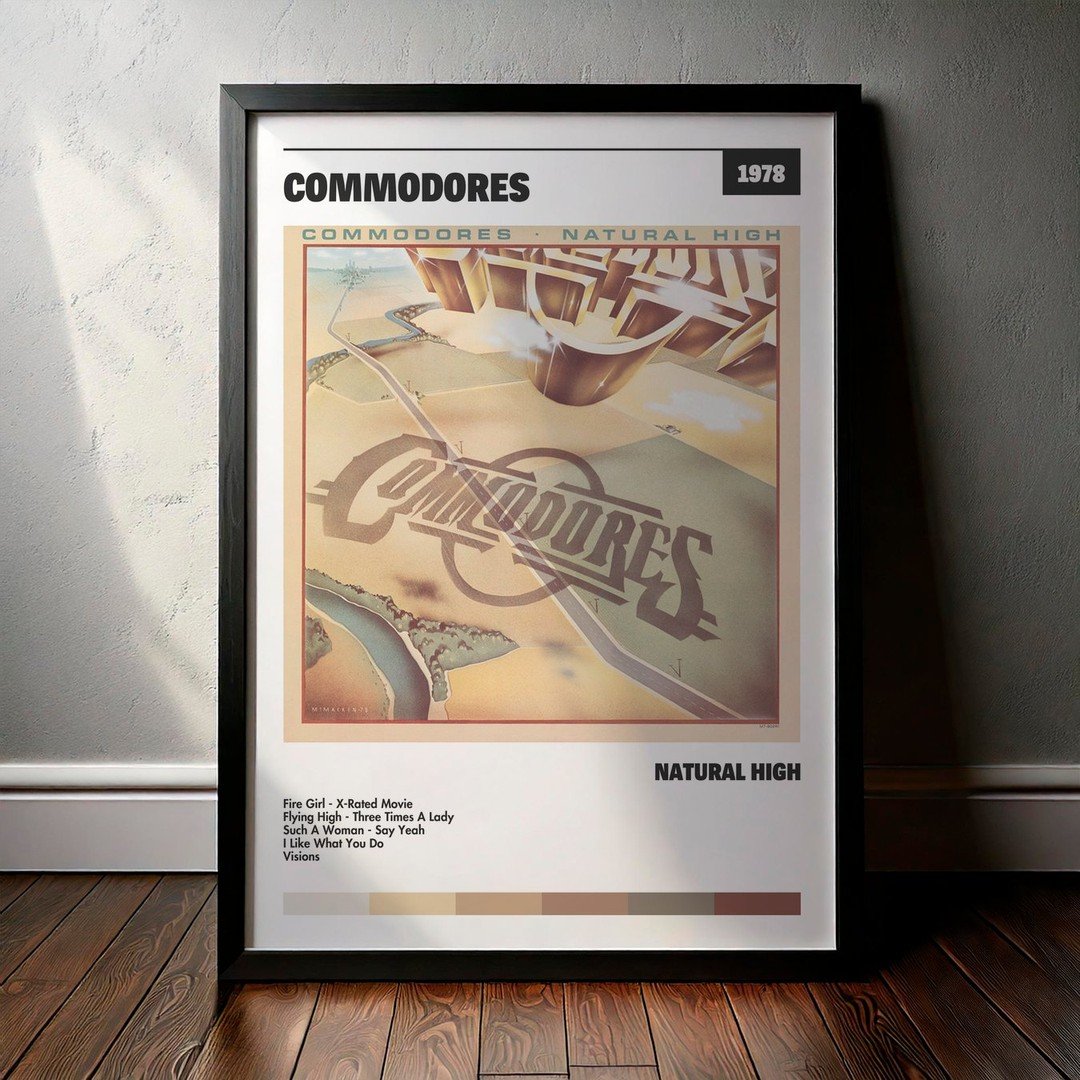 Nuestra colección de cuadros de Commodores captura la esencia de sus álbumes más icónicos, presentados en un elegante estilo, en este caso te presentamos el de su disco Natural High.