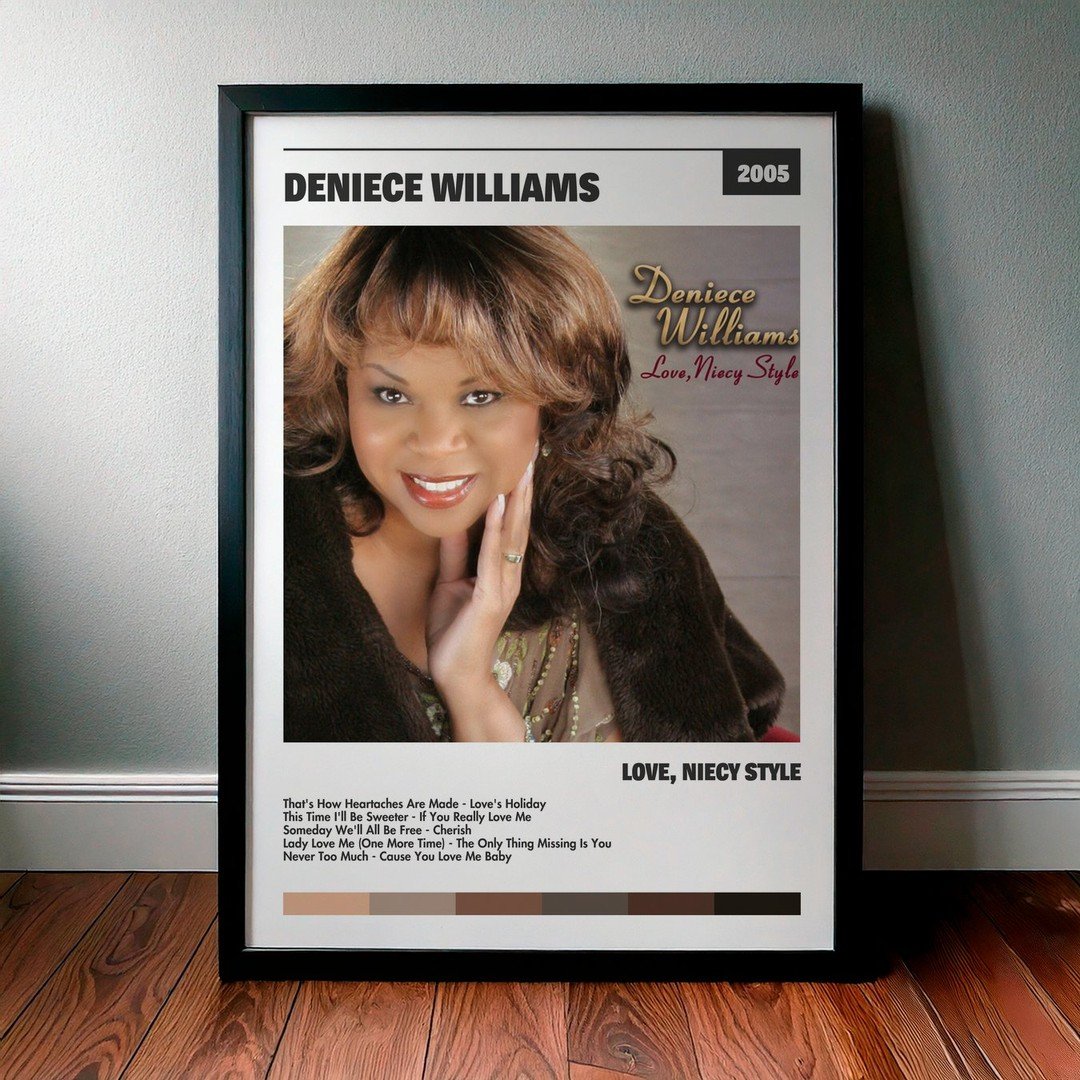 Nuestra colección de cuadros de Deniece Williams captura la esencia de sus álbumes más icónicos, presentados en un elegante estilo, en este caso te presentamos el de su disco Love, Niecy Style.