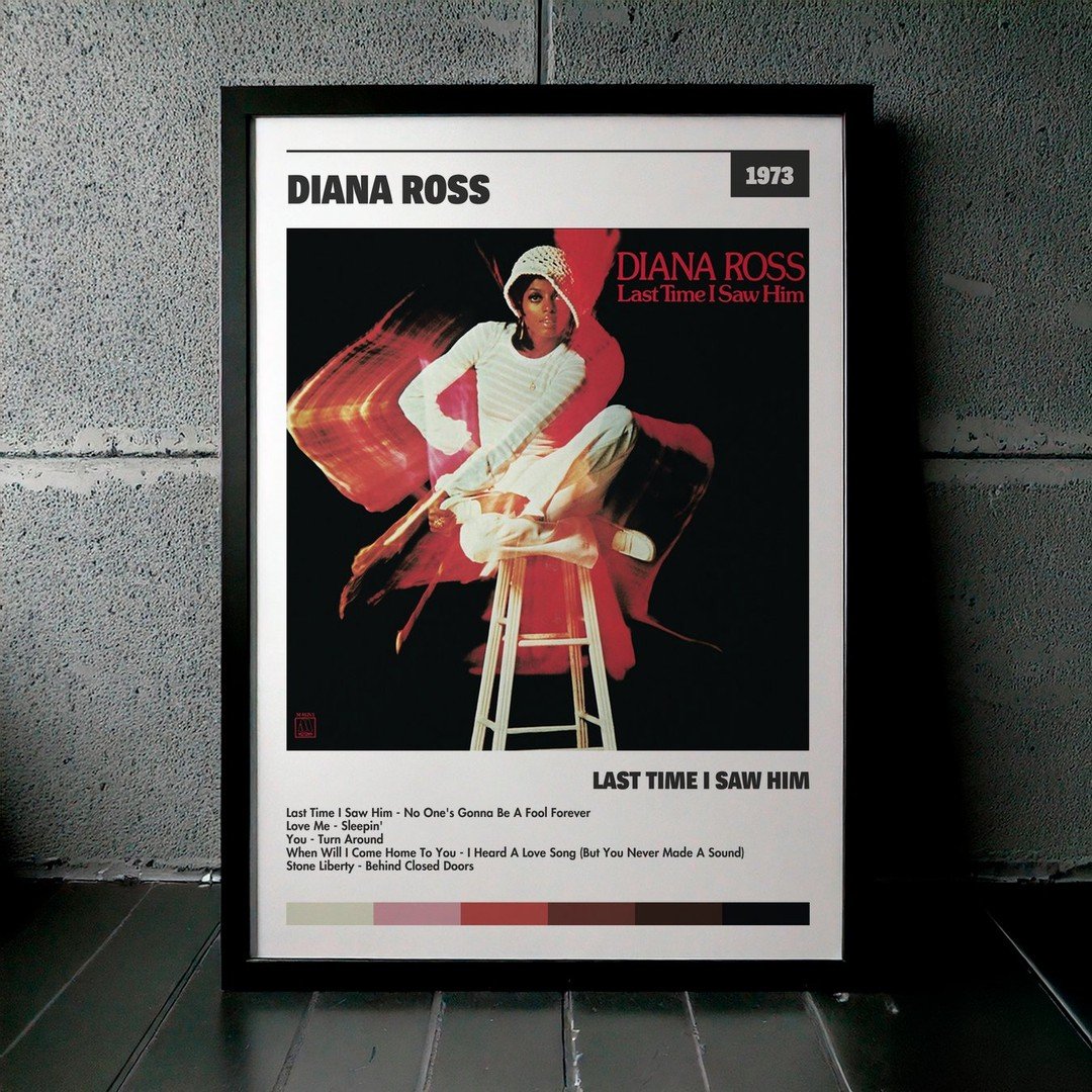 Nuestra colección de cuadros de Diana Ross captura la esencia de sus álbumes más icónicos, presentados en un elegante estilo, en este caso te presentamos el de su disco Last Time I Saw Him.