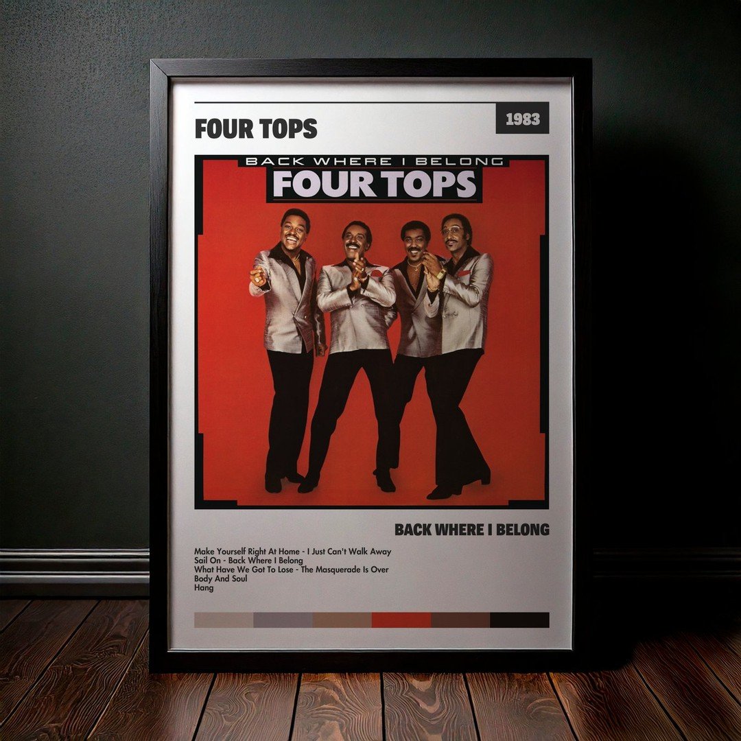 Nuestra colección de cuadros de Four Tops captura la esencia de sus álbumes más icónicos, presentados en un elegante estilo, en este caso te presentamos el de su disco Back Where I Belong.