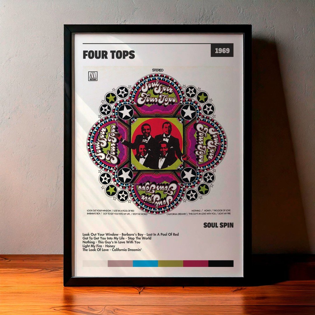 • Diseño Exclusivo: Cuadro de alta calidad basado en la portada del álbum Disco Spin de Four Tops.