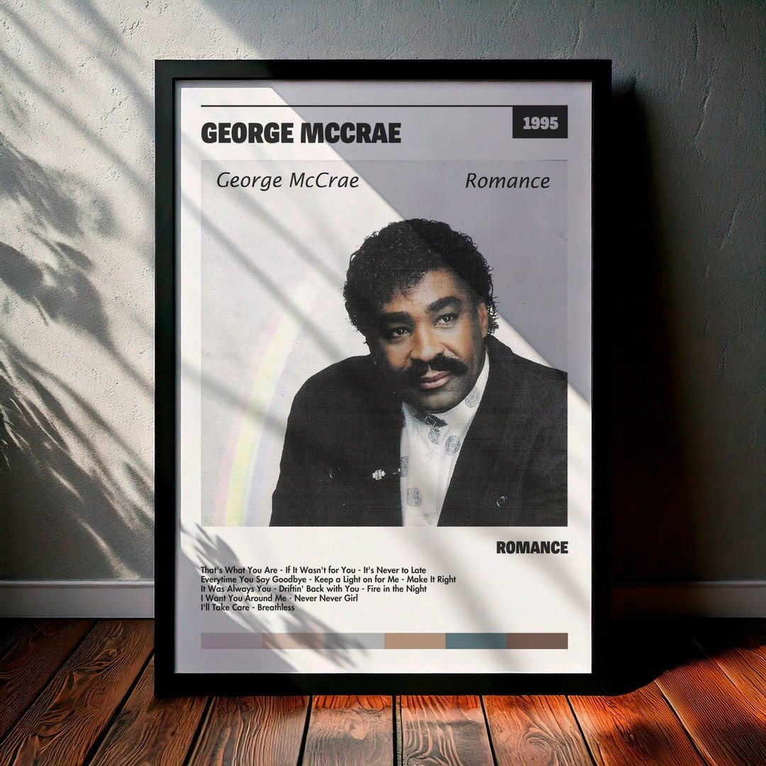 Nuestra colección de cuadros de George McCrae captura la esencia de sus álbumes más icónicos, presentados en un elegante estilo, en este caso te presentamos el de su disco Romance.