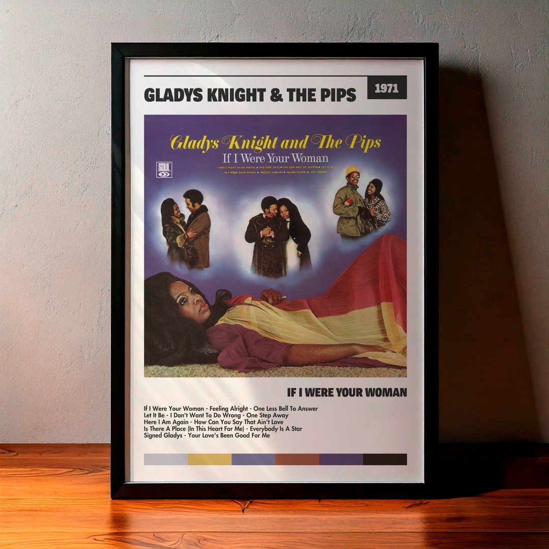 Nuestra colección de cuadros de Gladys Knight & The Pips captura la esencia de sus álbumes más icónicos, presentados en un elegante estilo, en este caso te presentamos el de su disco If I Were Your Woman.