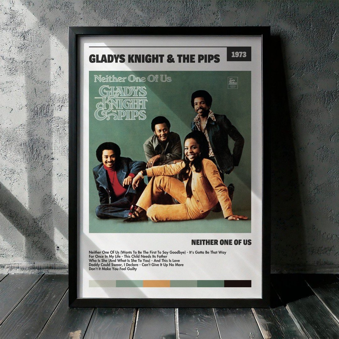 Nuestra colección de cuadros de Gladys Knight & The Pips captura la esencia de sus álbumes más icónicos, presentados en un elegante estilo, en este caso te presentamos el de su disco Neither One Of Us.