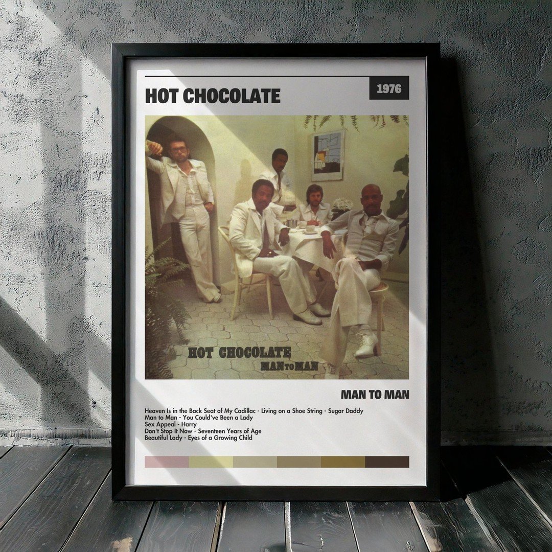 Nuestra colección de cuadros de Hot Chocolate captura la esencia de sus álbumes más icónicos, presentados en un elegante estilo, en este caso te presentamos el de su disco Man to Man.