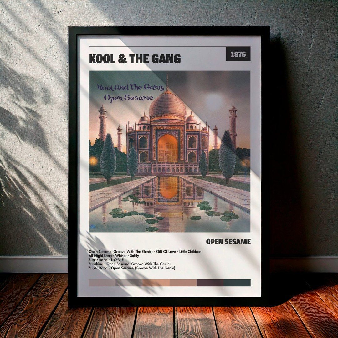 Nuestra colección de cuadros de Kool & The Gang captura la esencia de sus álbumes más icónicos, presentados en un elegante estilo, en este caso te presentamos el de su disco Open Sesame.