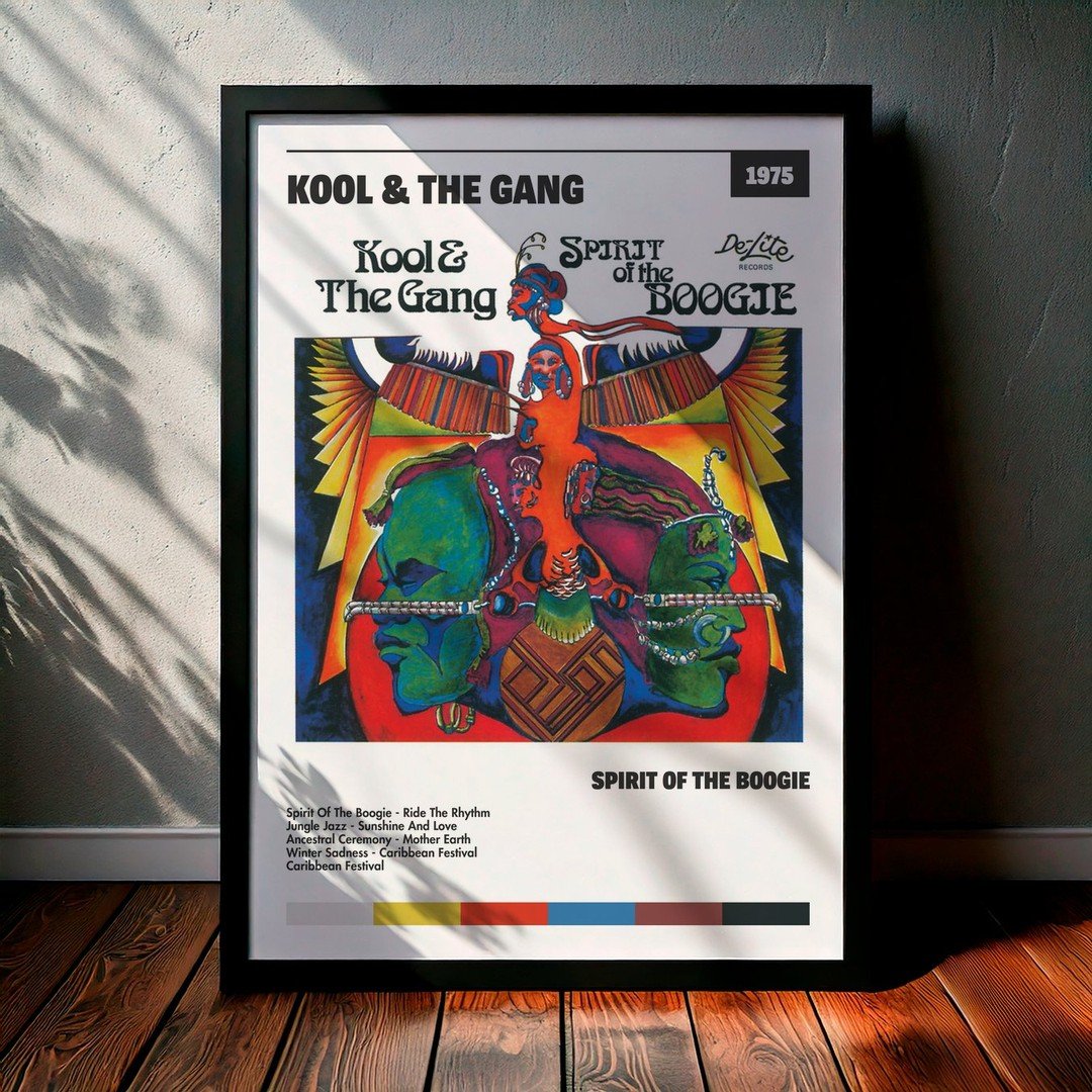 Nuestra colección de cuadros de Kool & The Gang captura la esencia de sus álbumes más icónicos, presentados en un elegante estilo, en este caso te presentamos el de su disco Spirit Of The Boogie.