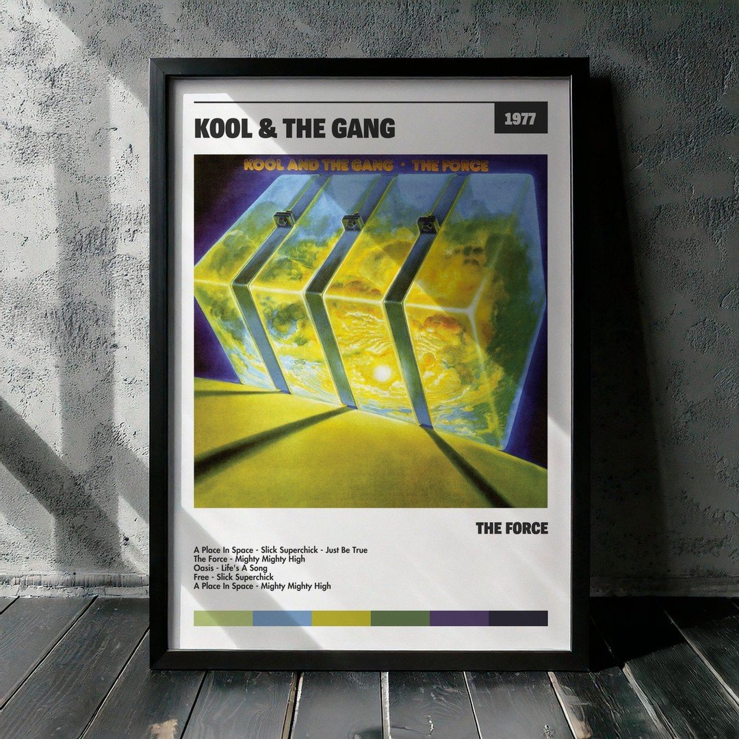 Nuestra colección de cuadros de Kool & The Gang captura la esencia de sus álbumes más icónicos, presentados en un elegante estilo, en este caso te presentamos el de su disco The Force.