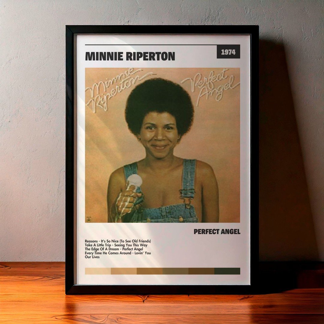 Nuestra colección de cuadros de Minnie Riperton captura la esencia de sus álbumes más icónicos, presentados en un elegante estilo, en este caso te presentamos el de su disco Perfect Angel.