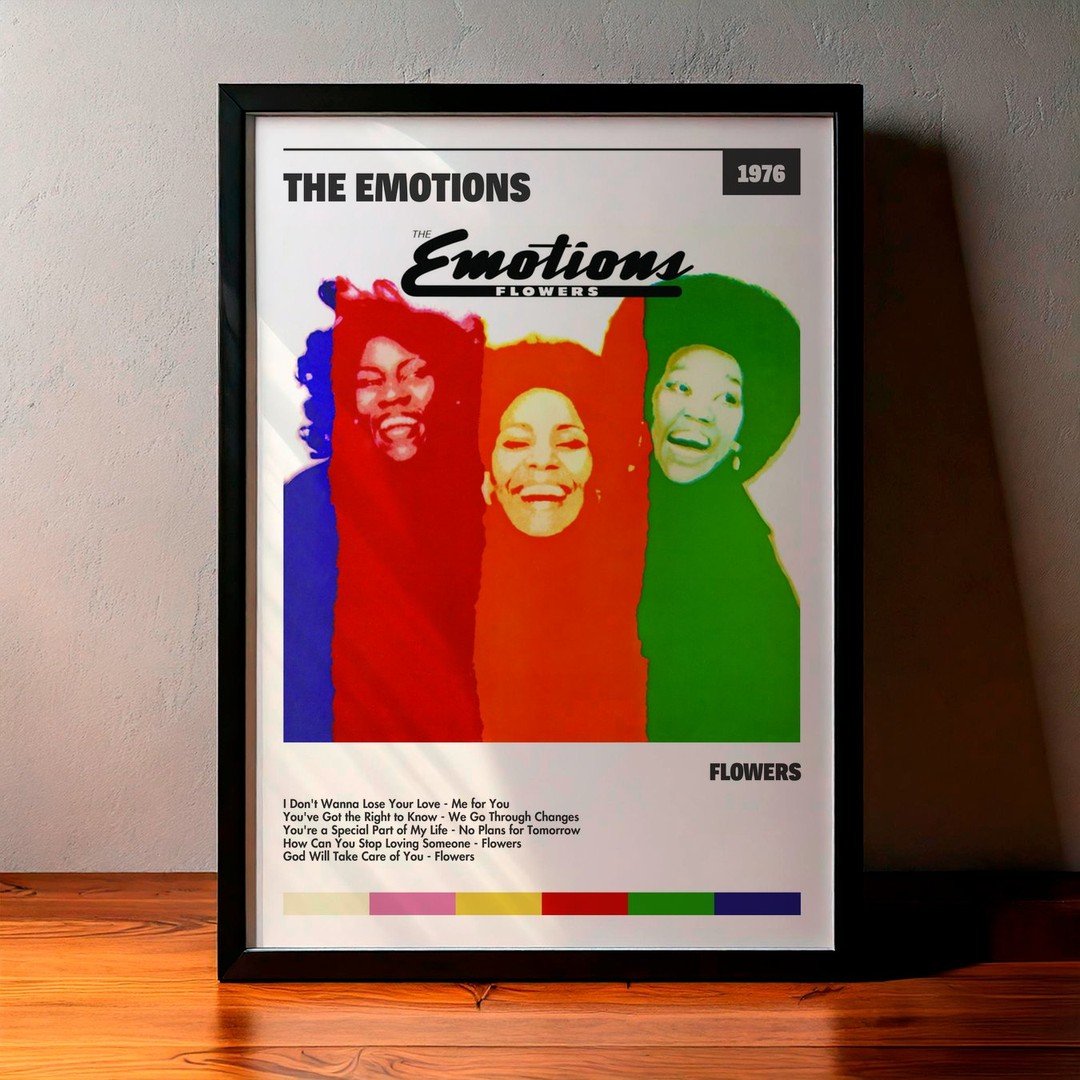 Nuestra colección de cuadros de The Emotions captura la esencia de sus álbumes más icónicos, presentados en un elegante estilo, en este caso te presentamos el de su disco Flowers.