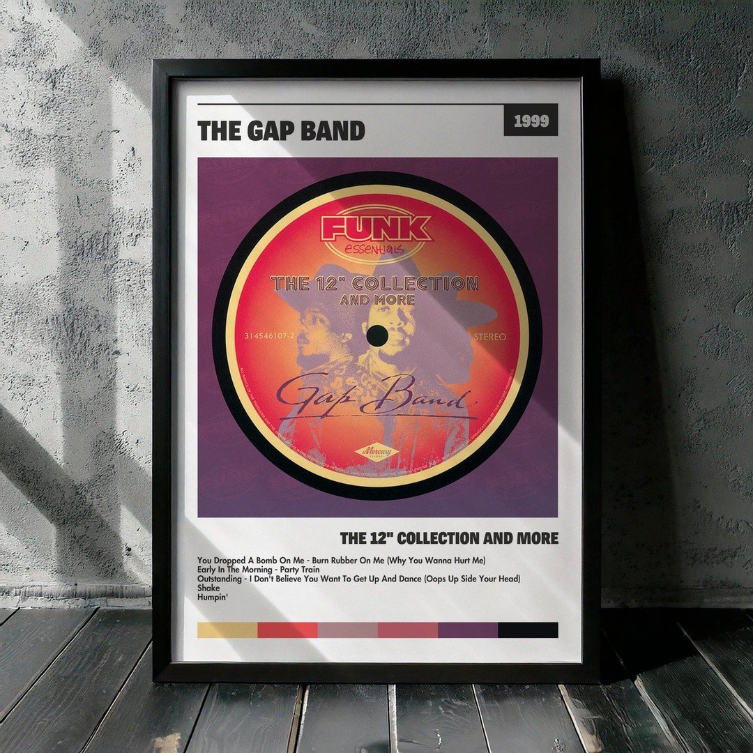 Nuestra colección de cuadros de The Gap Band captura la esencia de sus álbumes más icónicos, presentados en un elegante estilo, en este caso te presentamos el de su disco The 12″ Collection And More.