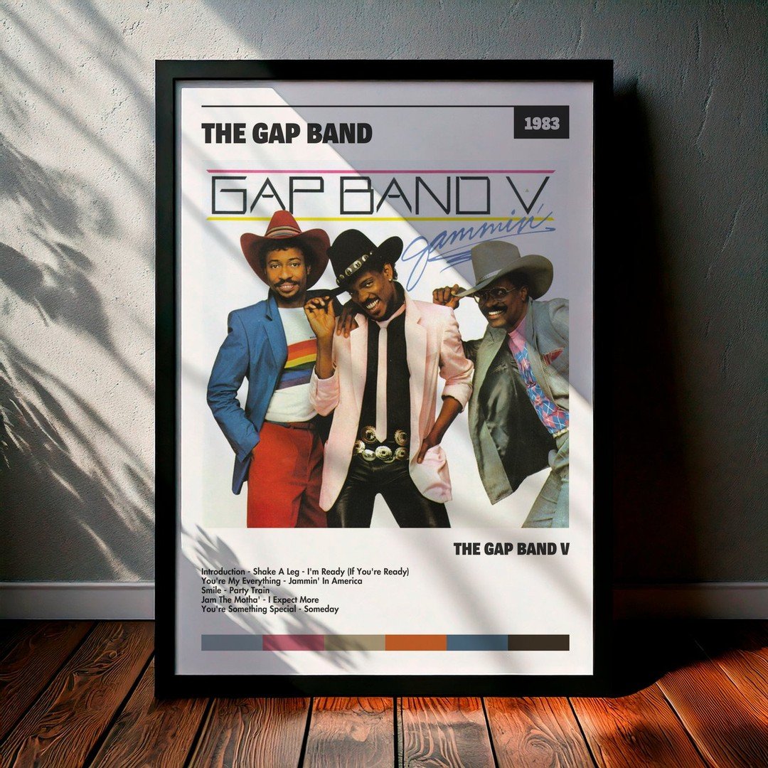 Nuestra colección de cuadros de The Gap Band captura la esencia de sus álbumes más icónicos, presentados en un elegante estilo, en este caso te presentamos el de su disco The Gap Band V.