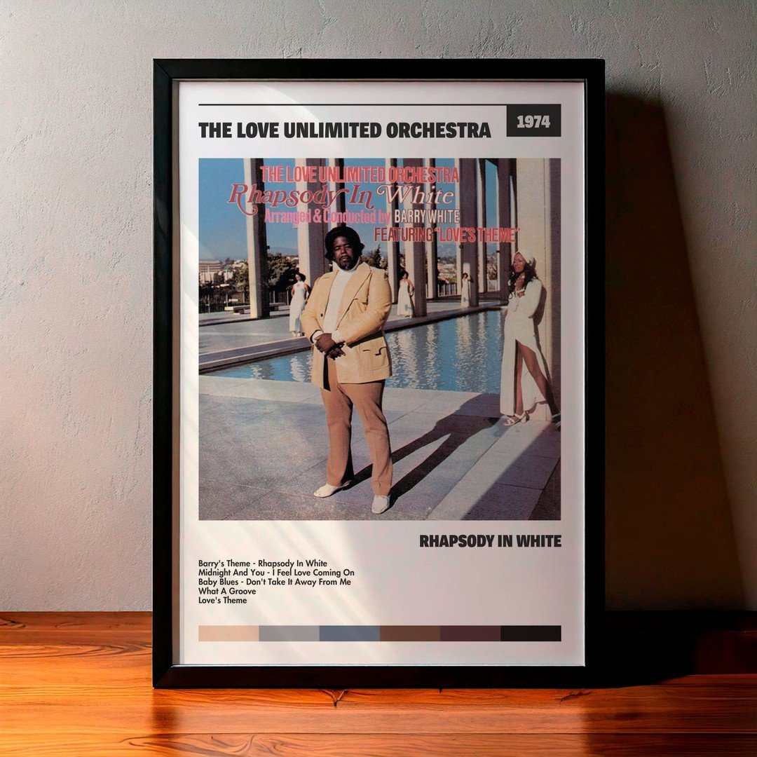 • Diseño Exclusivo: Cuadro de alta calidad basado en la portada del álbum Rhapsody In White de The Love Unlimited Orchestra.