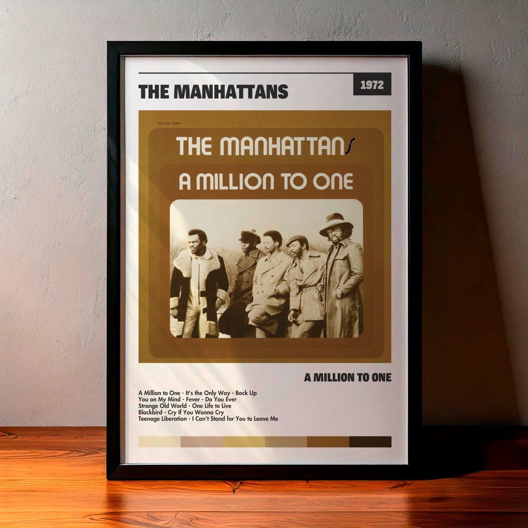 Nuestra colección de cuadros de The Manhattans captura la esencia de sus álbumes más icónicos, presentados en un elegante estilo, en este caso te presentamos el de su disco A Million to One.