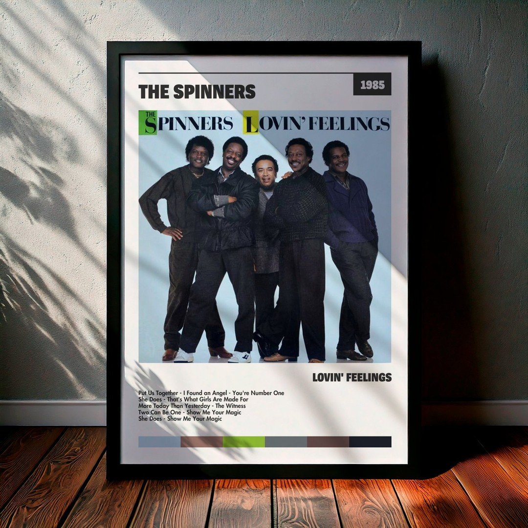 Nuestra colección de cuadros de The Spinners captura la esencia de sus álbumes más icónicos, presentados en un elegante estilo, en este caso te presentamos el de su disco Lovin’ Feelings.