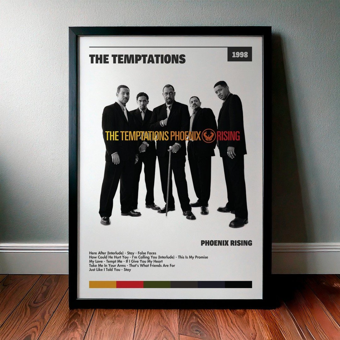 Nuestra colección de cuadros de The Temptations captura la esencia de sus álbumes más icónicos, presentados en un elegante estilo, en este caso te presentamos el de su disco Phoenix Rising.