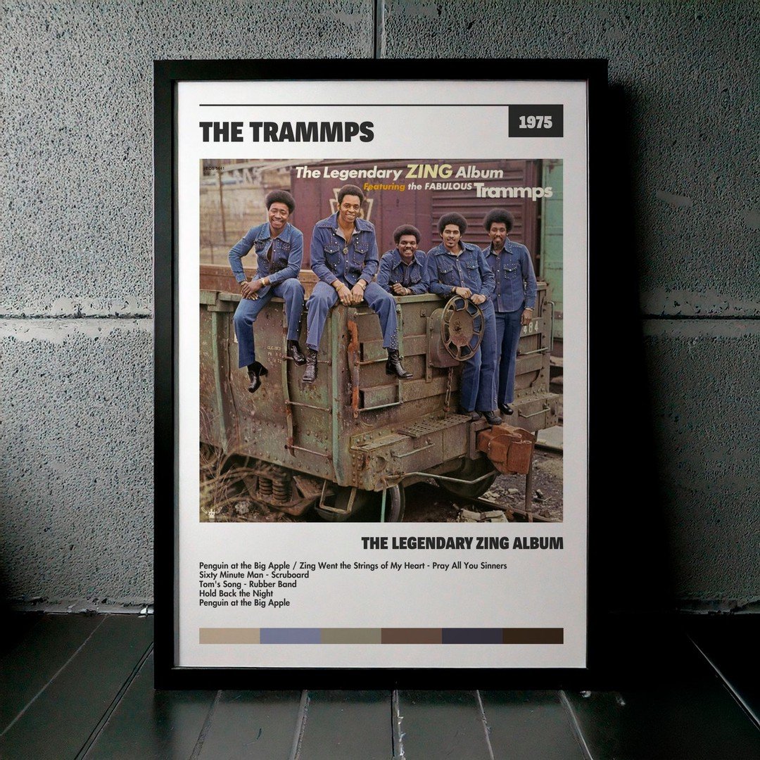 Nuestra colección de cuadros de The Trammps captura la esencia de sus álbumes más icónicos, presentados en un elegante estilo, en este caso te presentamos el de su disco The Legendary Zing Album.