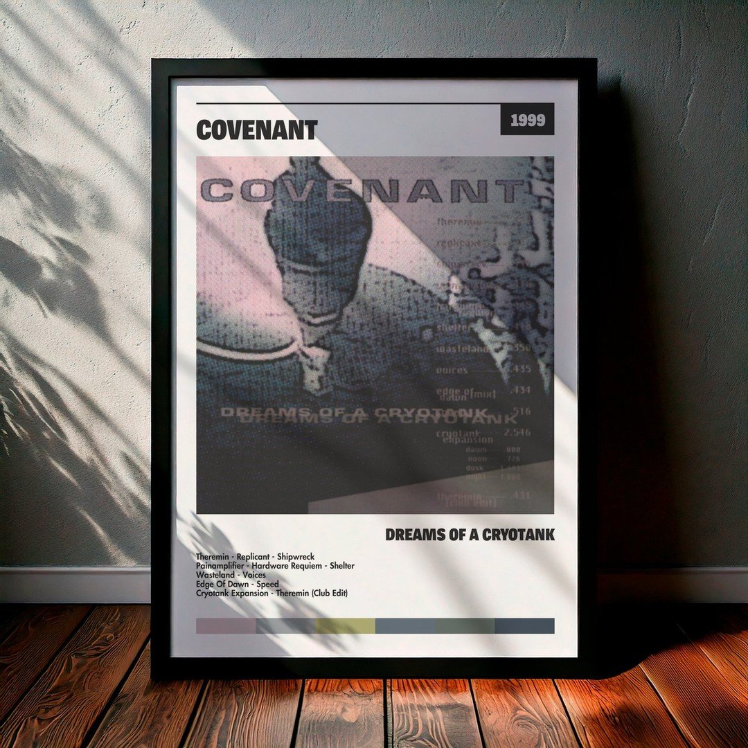 Nuestra colección de cuadros de Covenant captura la esencia de sus álbumes más icónicos, presentados en un elegante estilo, en este caso te presentamos el de su disco Dreams Of A Cryotank.