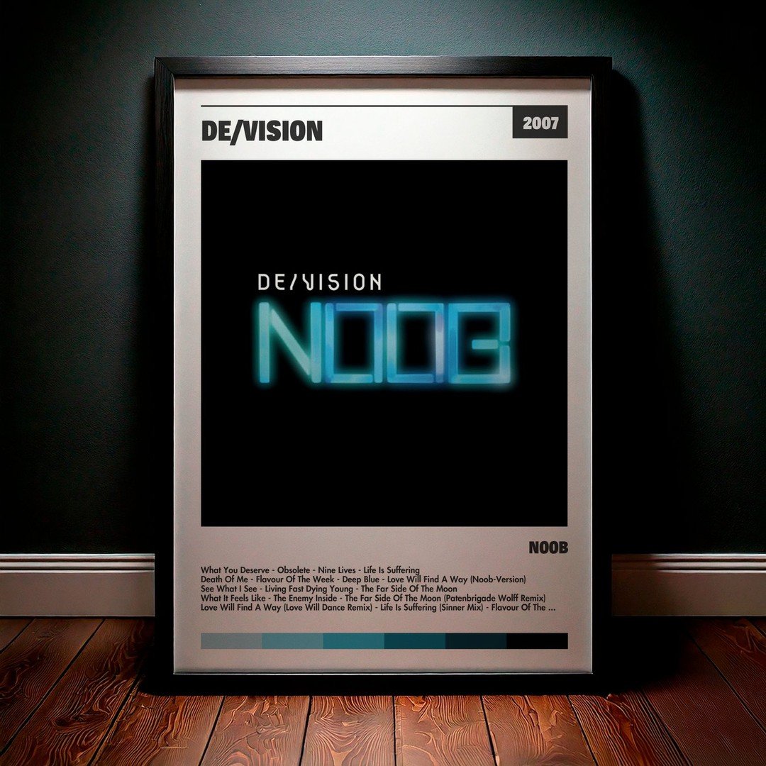 Nuestra colección de cuadros de De/Vision captura la esencia de sus álbumes más icónicos, presentados en un elegante estilo, en este caso te presentamos el de su disco NOOB.