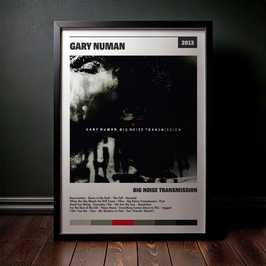 Nuestra colección de cuadros de Gary Numan captura la esencia de sus álbumes más icónicos, presentados en un elegante estilo, en este caso te presentamos el de su disco Big Noise Transmission.