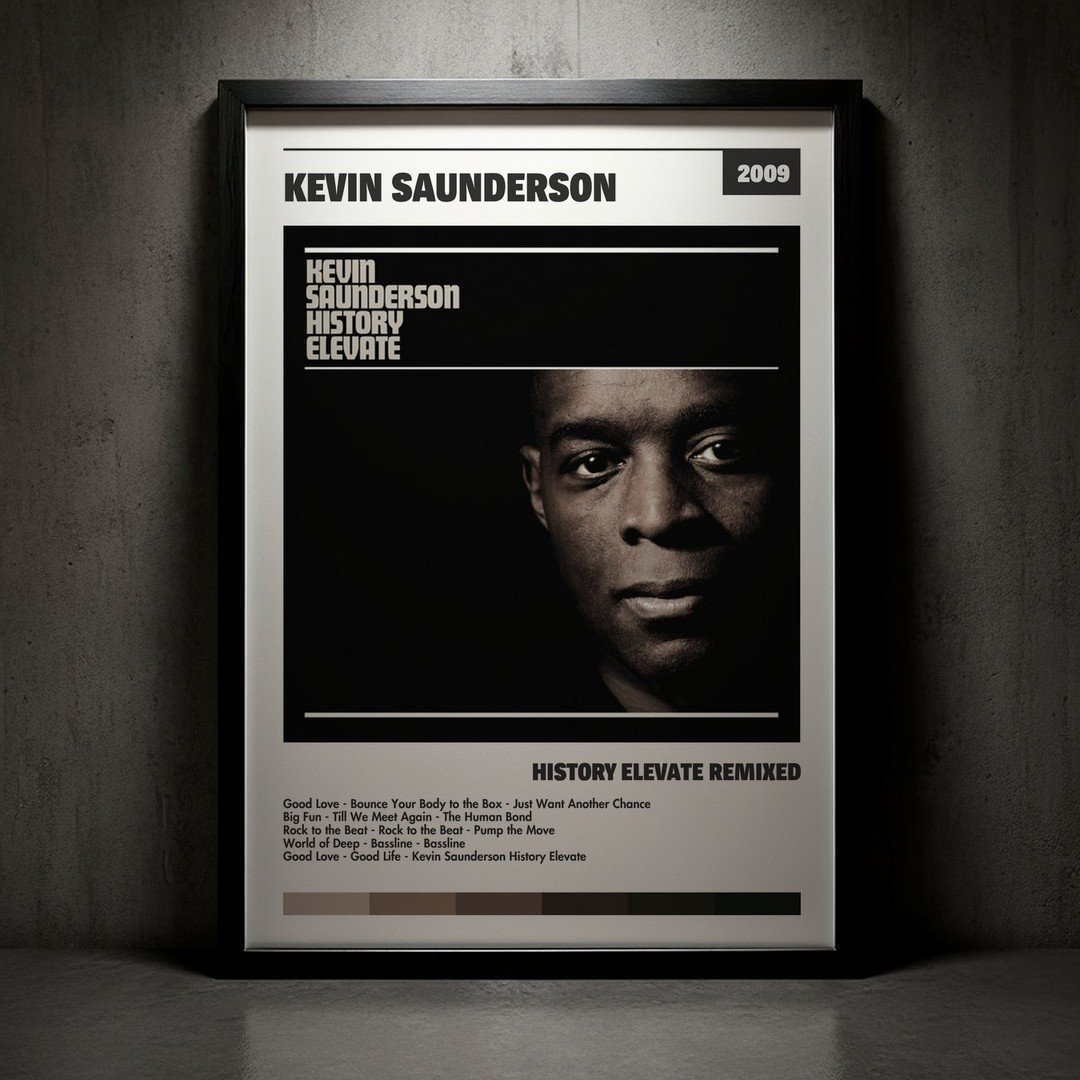 Nuestra colección de cuadros de Kevin Saunderson captura la esencia de sus álbumes más icónicos, presentados en un elegante estilo, en este caso te presentamos el de su disco History Elevate Remixed.