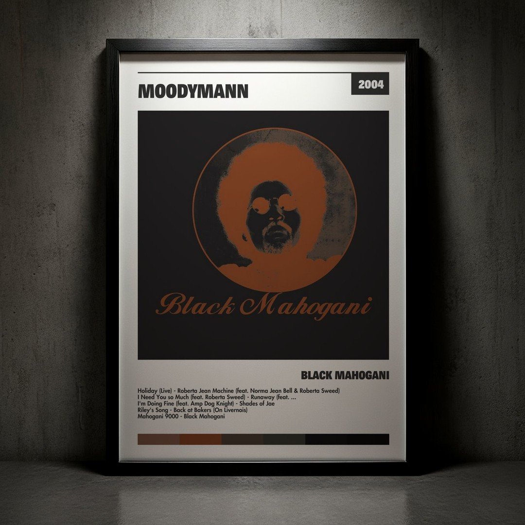 Nuestra colección de cuadros de Moodymann captura la esencia de sus álbumes más icónicos, presentados en un elegante estilo, en este caso te presentamos el de su disco Black Mahogani.