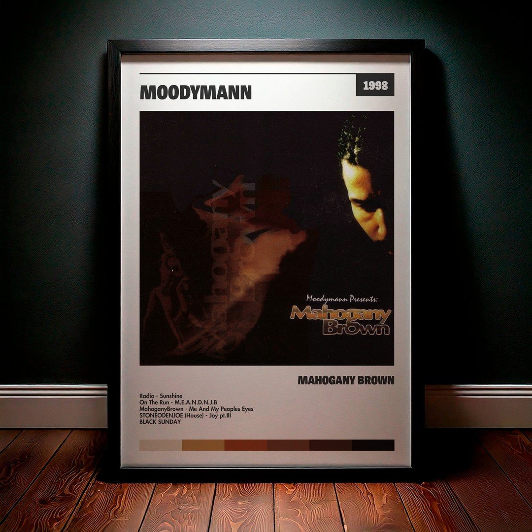 Nuestra colección de cuadros de Moodymann captura la esencia de sus álbumes más icónicos, presentados en un elegante estilo, en este caso te presentamos el de su disco Mahogany Brown.