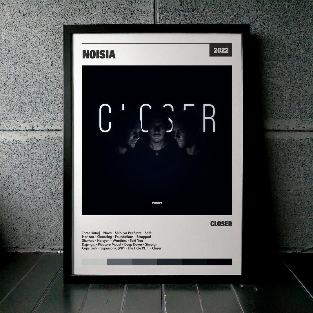Nuestra colección de cuadros de Noisia captura la esencia de sus álbumes más icónicos, presentados en un elegante estilo, en este caso te presentamos el de su disco Closer.