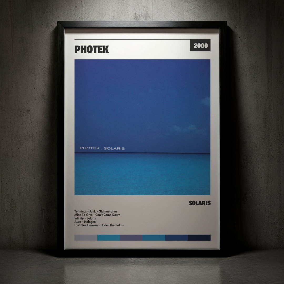 Nuestra colección de cuadros de Photek captura la esencia de sus álbumes más icónicos, presentados en un elegante estilo, en este caso te presentamos el de su disco Solaris.