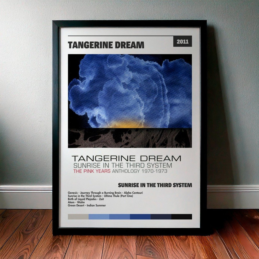 Nuestra colección de cuadros de Tangerine Dream captura la esencia de sus álbumes más icónicos, presentados en un elegante estilo, en este caso te presentamos el de su disco Sunrise in the Third System.