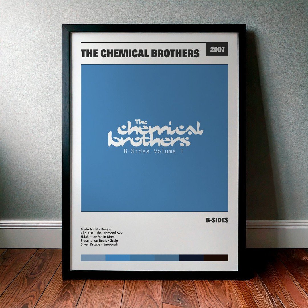 Nuestra colección de cuadros de The Chemical Brothers captura la esencia de sus álbumes más icónicos, presentados en un elegante estilo, en este caso te presentamos el de su disco B-Sides.