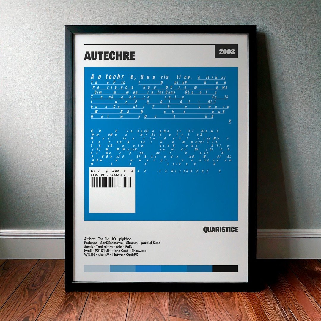 Nuestra colección de cuadros de Autechre captura la esencia de sus álbumes más icónicos, presentados en un elegante estilo, en este caso te presentamos el de su disco Quaristice.