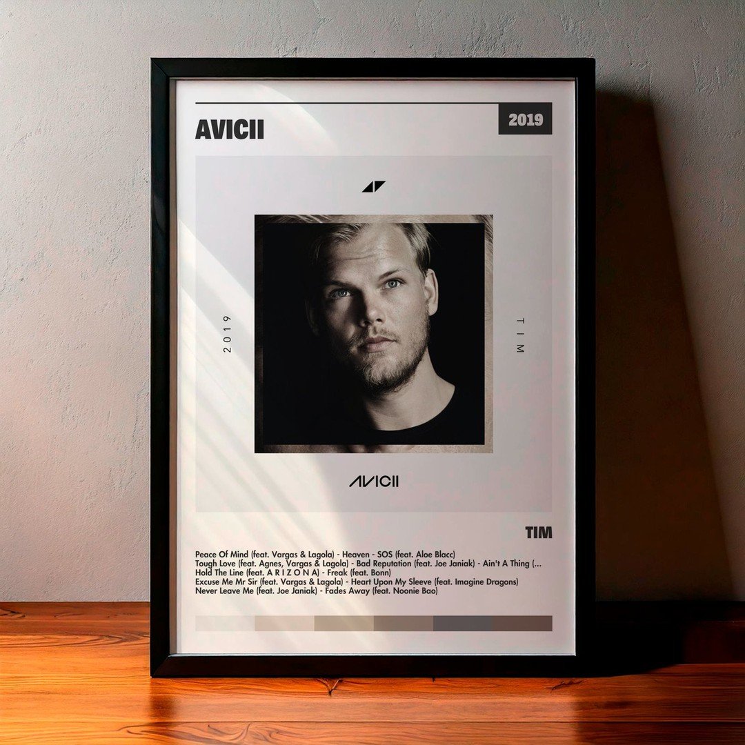 Nuestra colección de cuadros de Avicii captura la esencia de sus álbumes más icónicos, presentados en un elegante estilo, en este caso te presentamos el de su disco TIM.