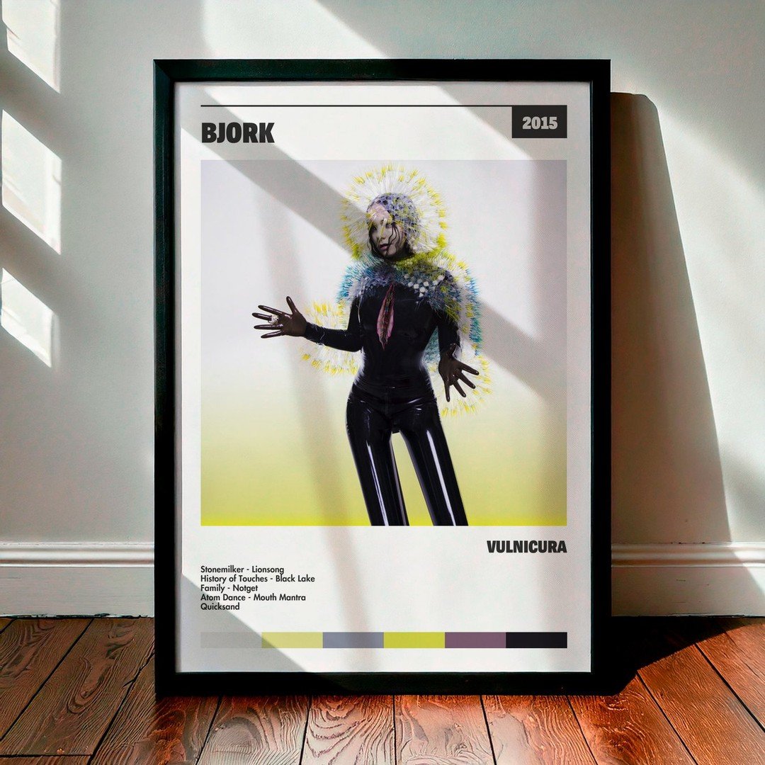 Nuestra colección de cuadros de Björk captura la esencia de sus álbumes más icónicos, presentados en un elegante estilo, en este caso te presentamos el de su disco Vulnicura.