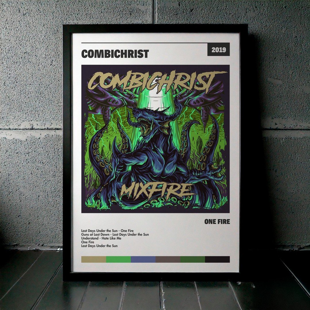 Nuestra colección de cuadros de Combichrist captura la esencia de sus álbumes más icónicos, presentados en un elegante estilo, en este caso te presentamos el de su disco One Fire.