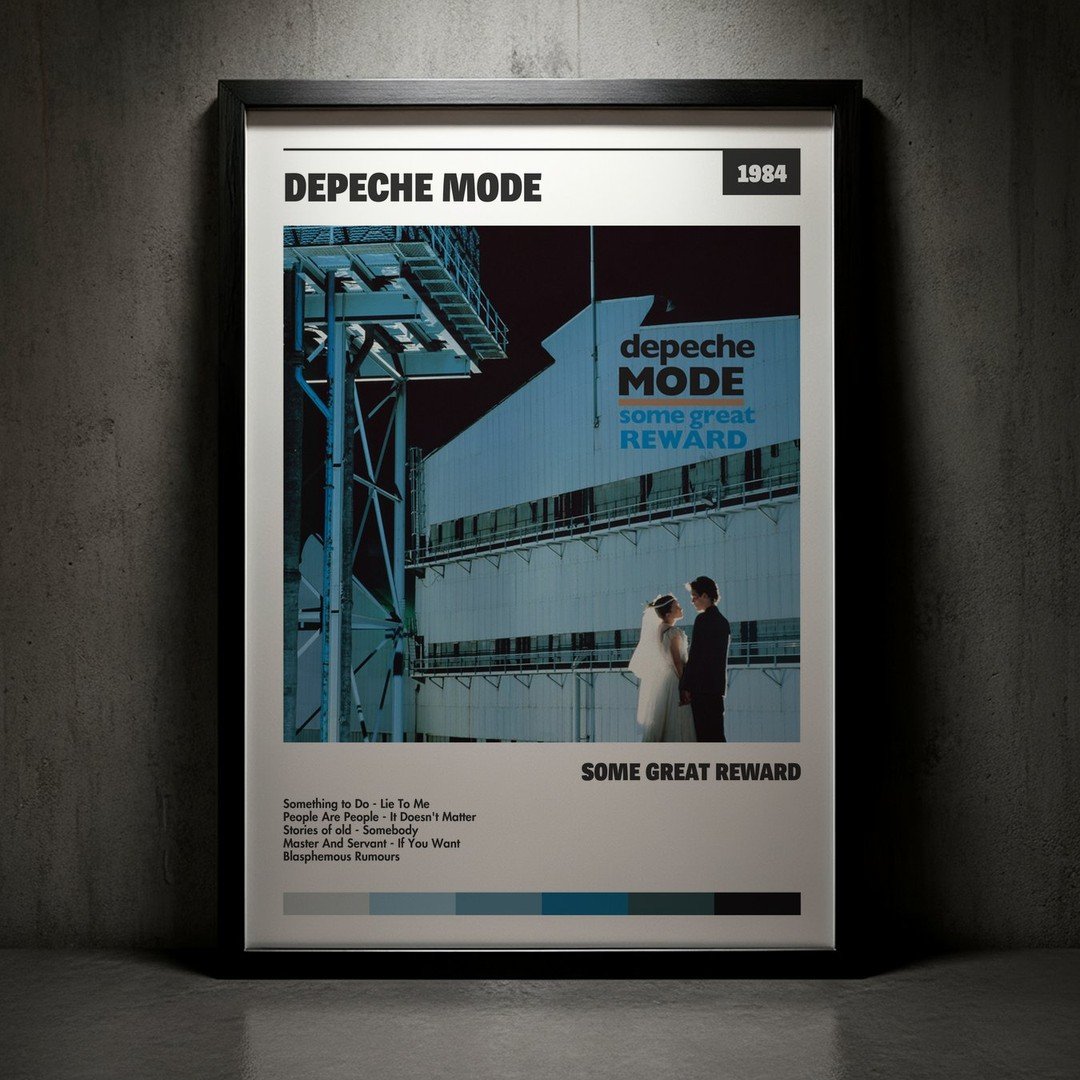 Nuestra colección de cuadros de Depeche Mode captura la esencia de sus álbumes más icónicos, presentados en un elegante estilo, en este caso te presentamos el de su disco Some Great Reward.