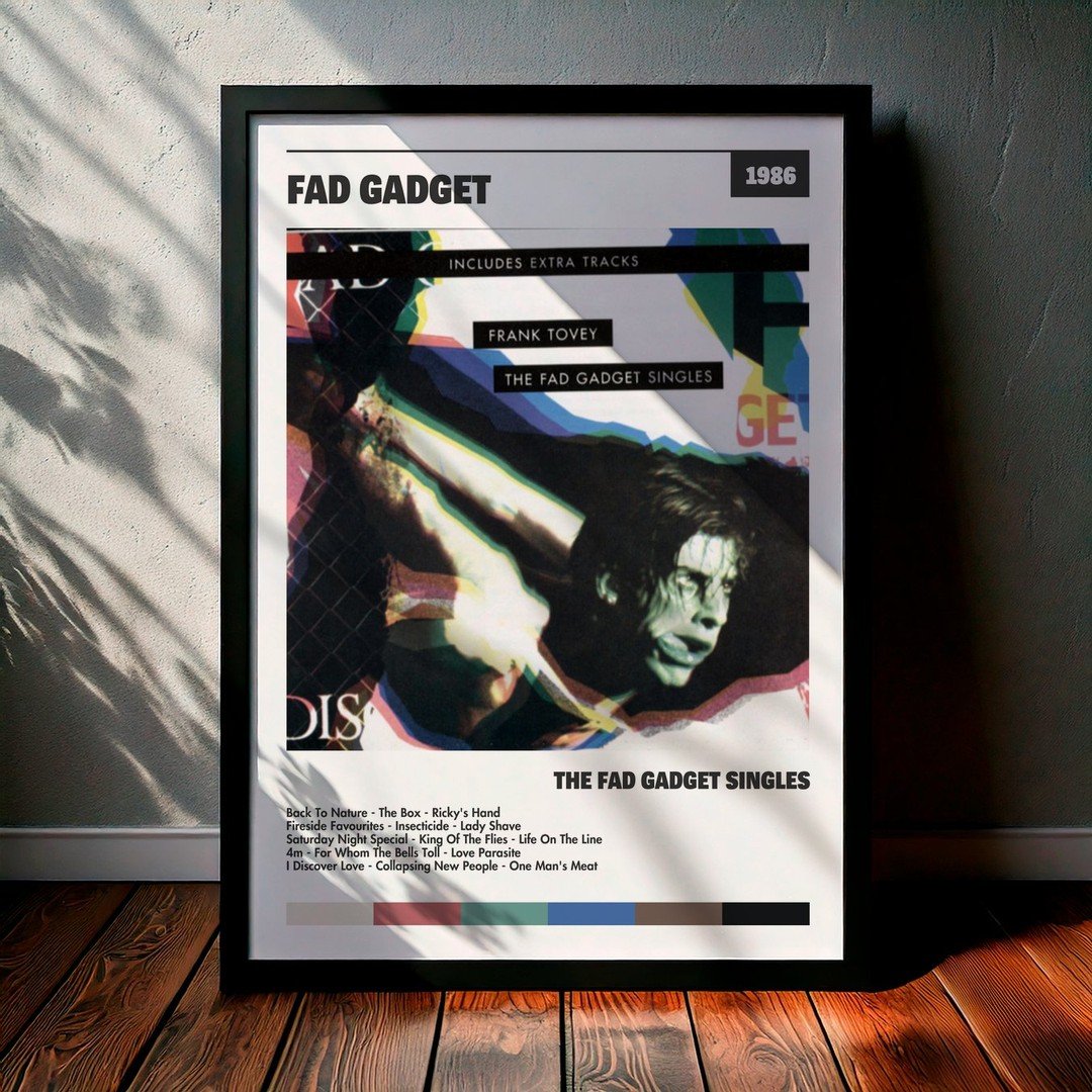 Nuestra colección de cuadros de Fad Gadget captura la esencia de sus álbumes más icónicos, presentados en un elegante estilo, en este caso te presentamos el de su disco The Fad Gadget Singles.