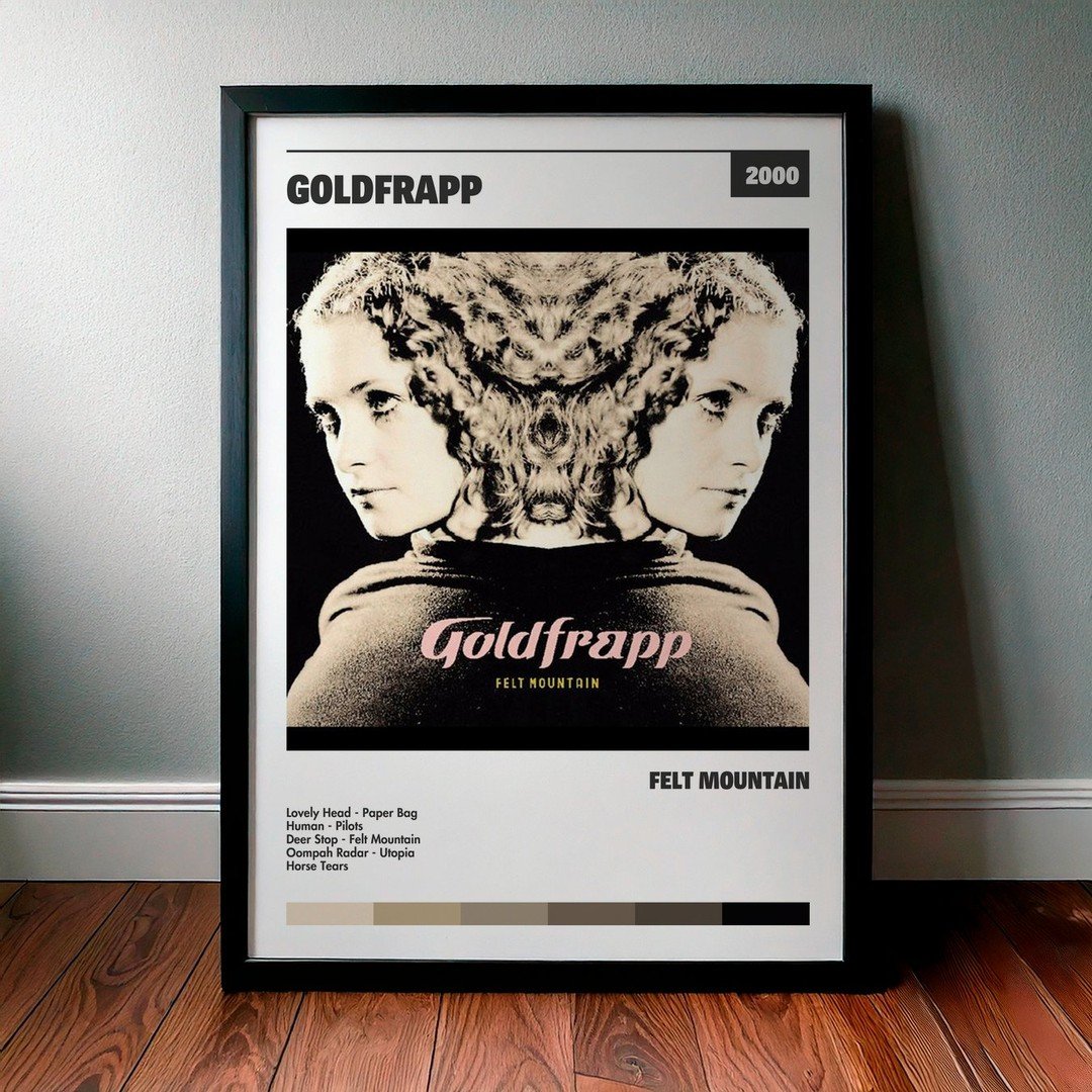 Nuestra colección de cuadros de Goldfrapp captura la esencia de sus álbumes más icónicos, presentados en un elegante estilo, en este caso te presentamos el de su disco Felt Mountain.