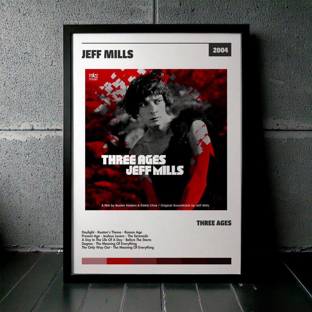 Nuestra colección de cuadros de Jeff Mills captura la esencia de sus álbumes más icónicos, presentados en un elegante estilo, en este caso te presentamos el de su disco Three Ages.
