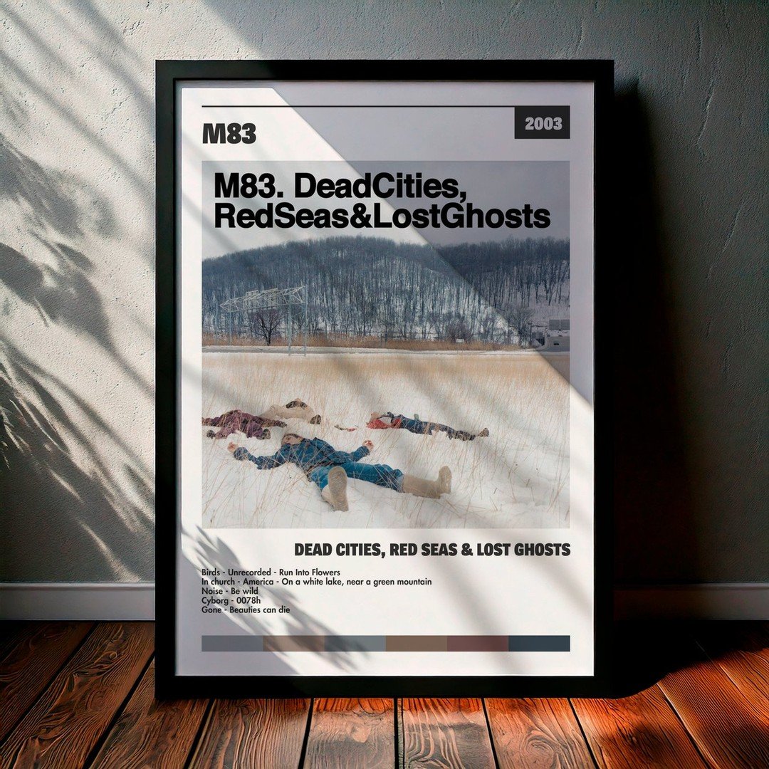Nuestra colección de cuadros de M83 captura la esencia de sus álbumes más icónicos, presentados en un elegante estilo, en este caso te presentamos el de su disco Dead Cities, Red Seas & Lost Ghosts.