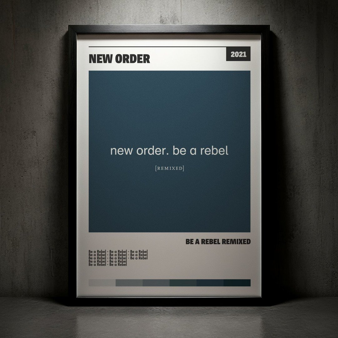 Nuestra colección de cuadros de New Order captura la esencia de sus álbumes más icónicos, presentados en un elegante estilo, en este caso te presentamos el de su disco Be a Rebel Remixed.