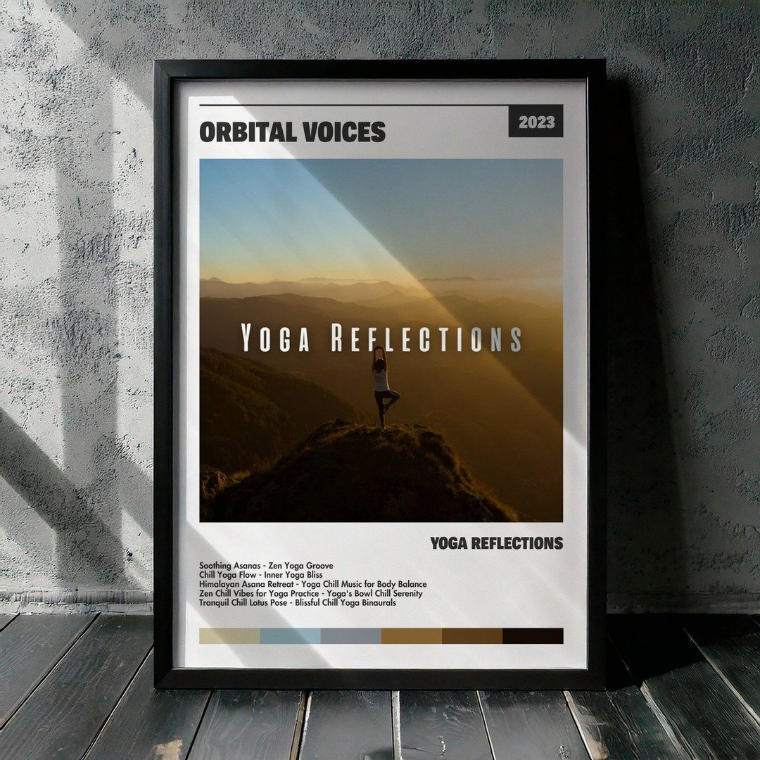 Nuestra colección de cuadros de orbital voices captura la esencia de sus álbumes más icónicos, presentados en un elegante estilo, en este caso te presentamos el de su disco Yoga Reflections.