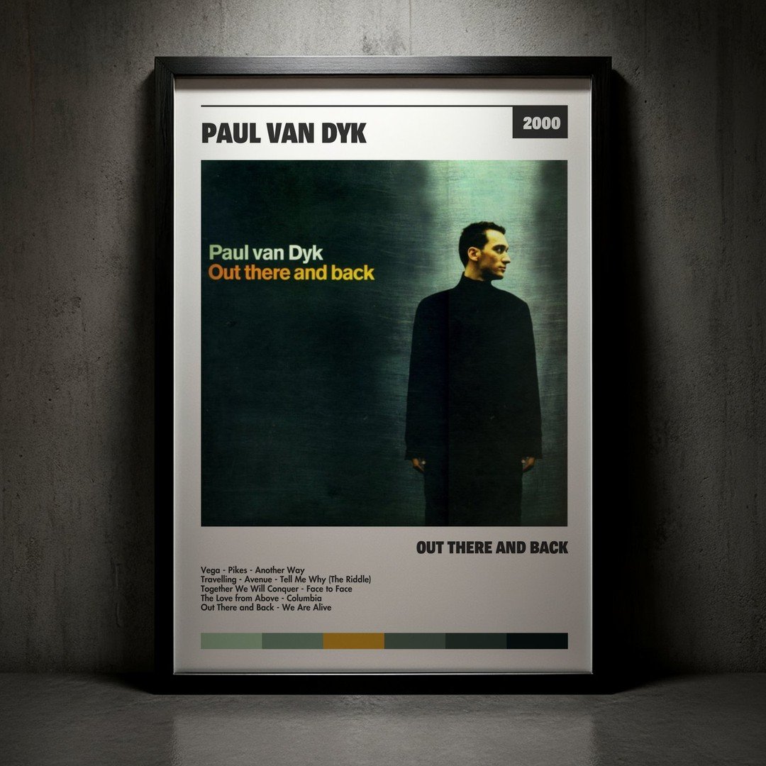 Nuestra colección de cuadros de Paul van Dyk captura la esencia de sus álbumes más icónicos, presentados en un elegante estilo, en este caso te presentamos el de su disco Out There and Back.