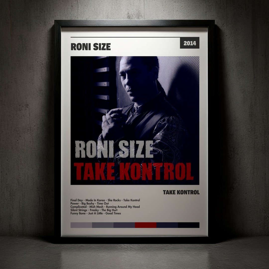 Nuestra colección de cuadros de Roni Size captura la esencia de sus álbumes más icónicos, presentados en un elegante estilo, en este caso te presentamos el de su disco Take Kontrol.