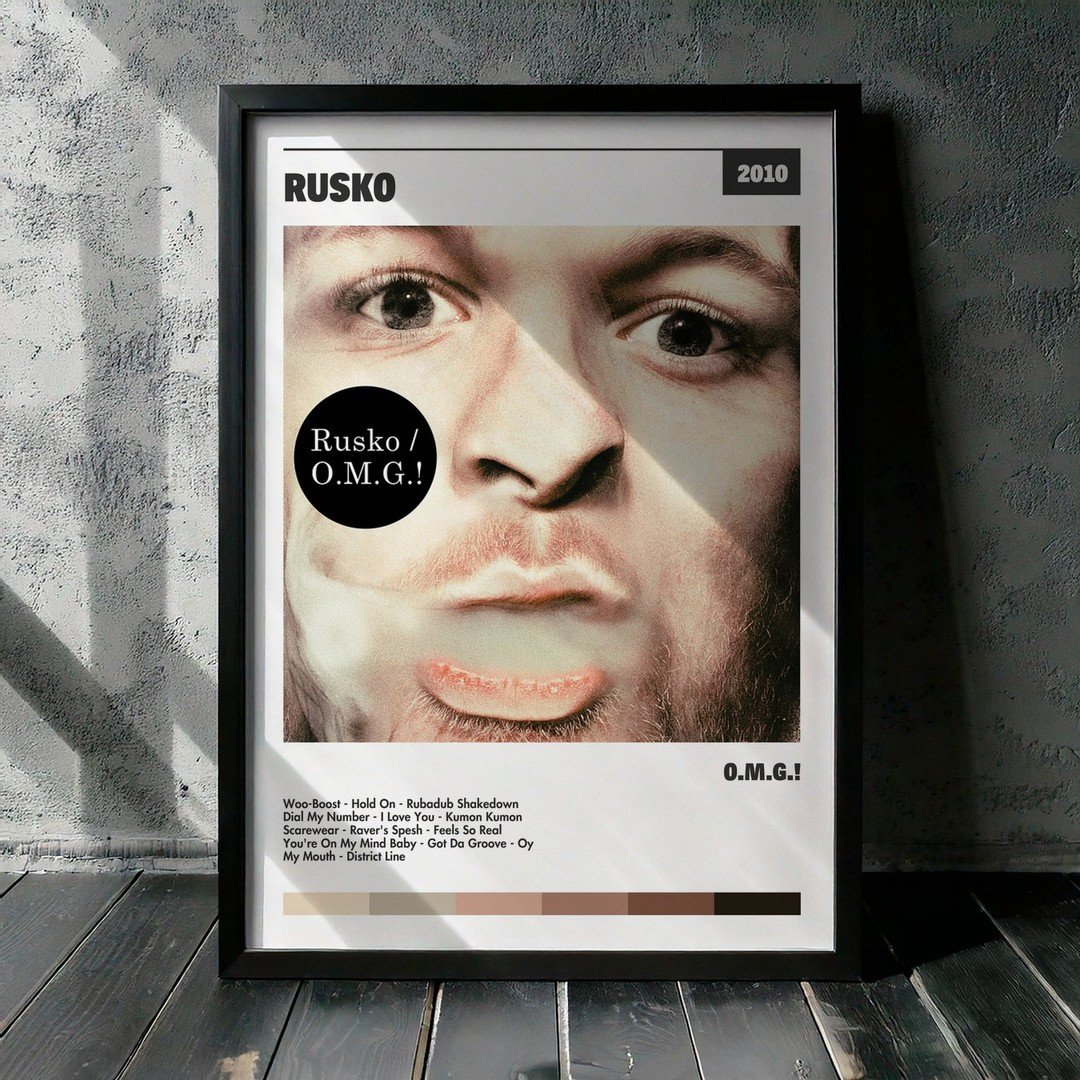 Nuestra colección de cuadros de Rusko captura la esencia de sus álbumes más icónicos, presentados en un elegante estilo, en este caso te presentamos el de su disco O.M.G.!.