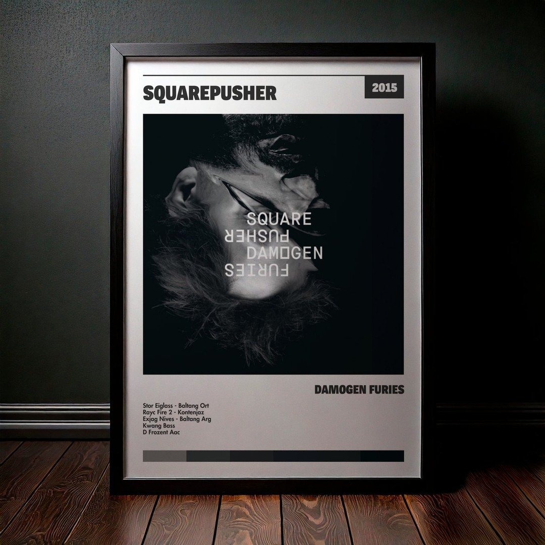 Nuestra colección de cuadros de Squarepusher captura la esencia de sus álbumes más icónicos, presentados en un elegante estilo, en este caso te presentamos el de su disco Damogen Furies.