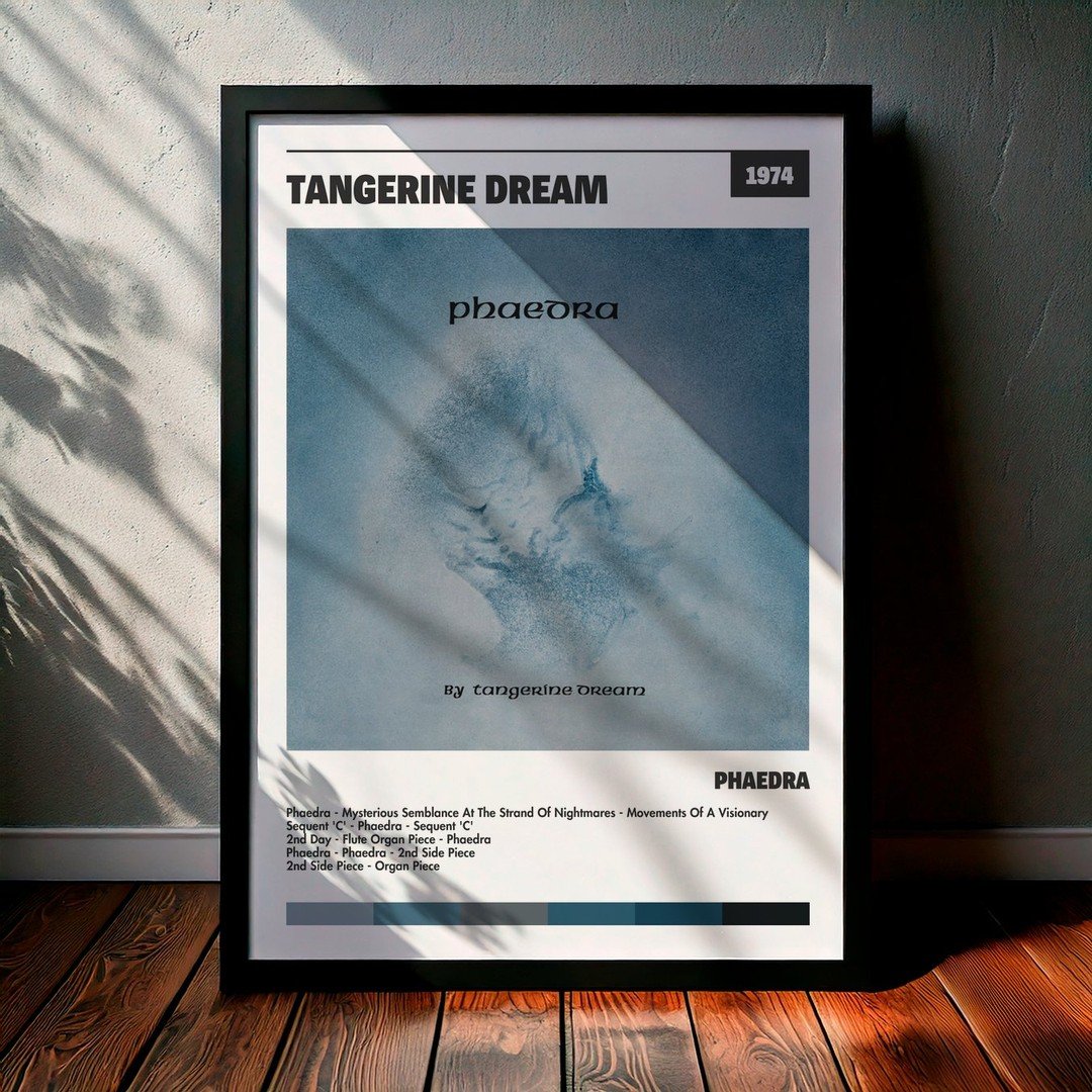 Nuestra colección de cuadros de Tangerine Dream captura la esencia de sus álbumes más icónicos, presentados en un elegante estilo, en este caso te presentamos el de su disco Phaedra.
