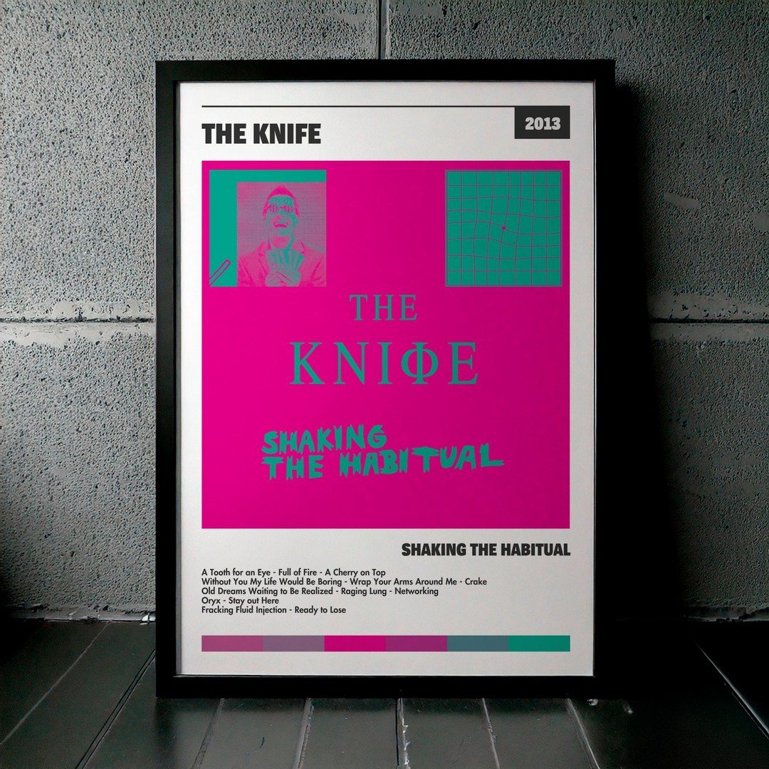 Nuestra colección de cuadros de The Knife captura la esencia de sus álbumes más icónicos, presentados en un elegante estilo, en este caso te presentamos el de su disco Shaking the Habitual.